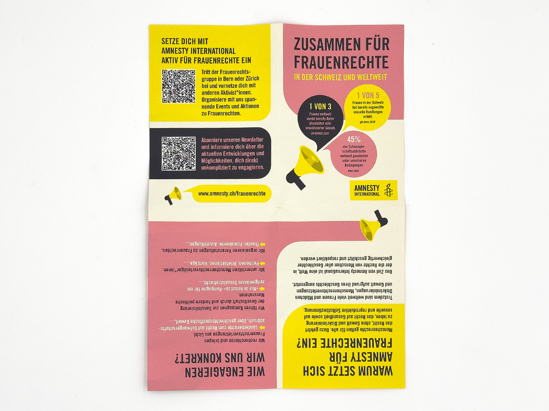 Illustration and graphic design for a flyer commissioned by Amnesty International Switzerland, advocating for the protection of women's rights.