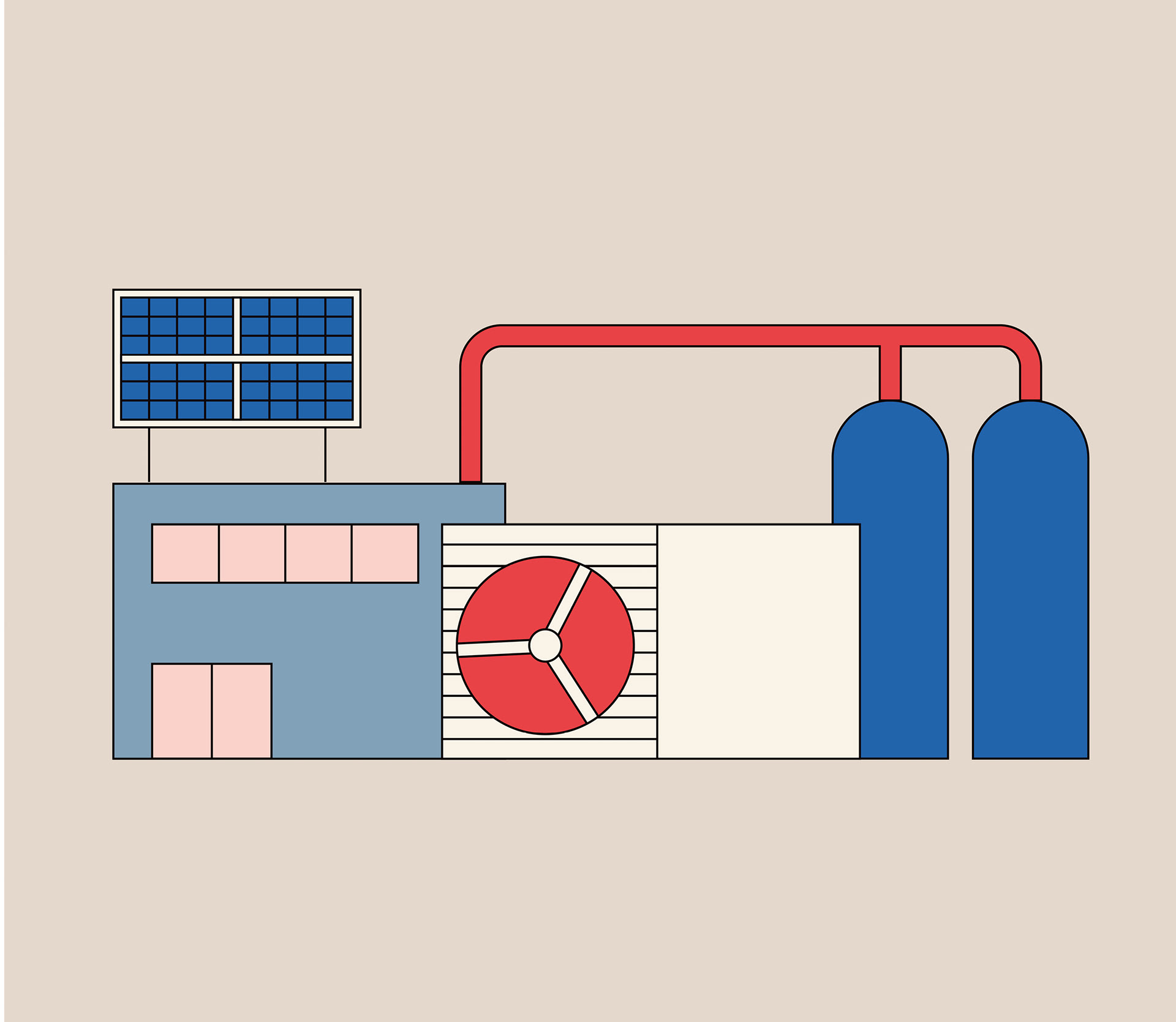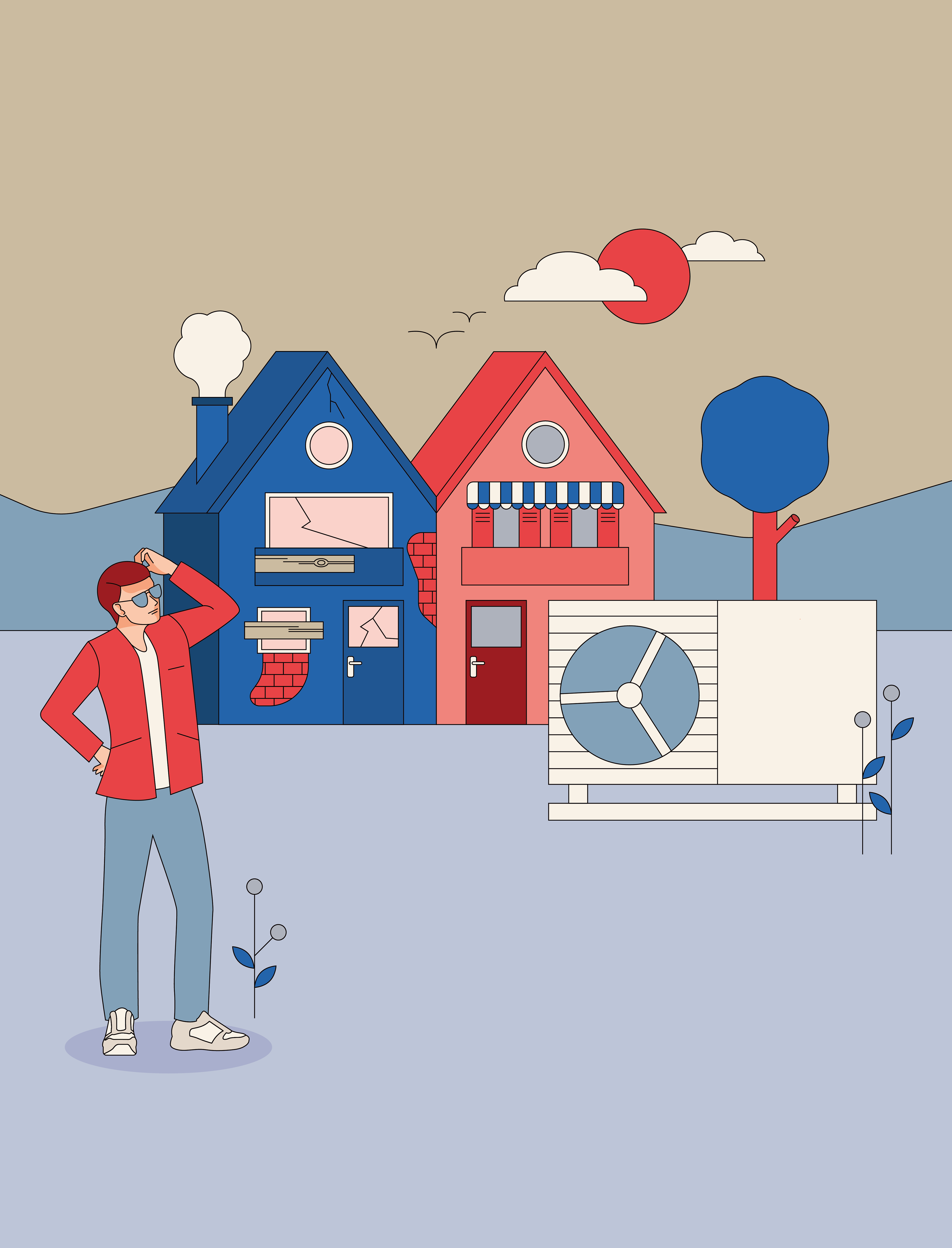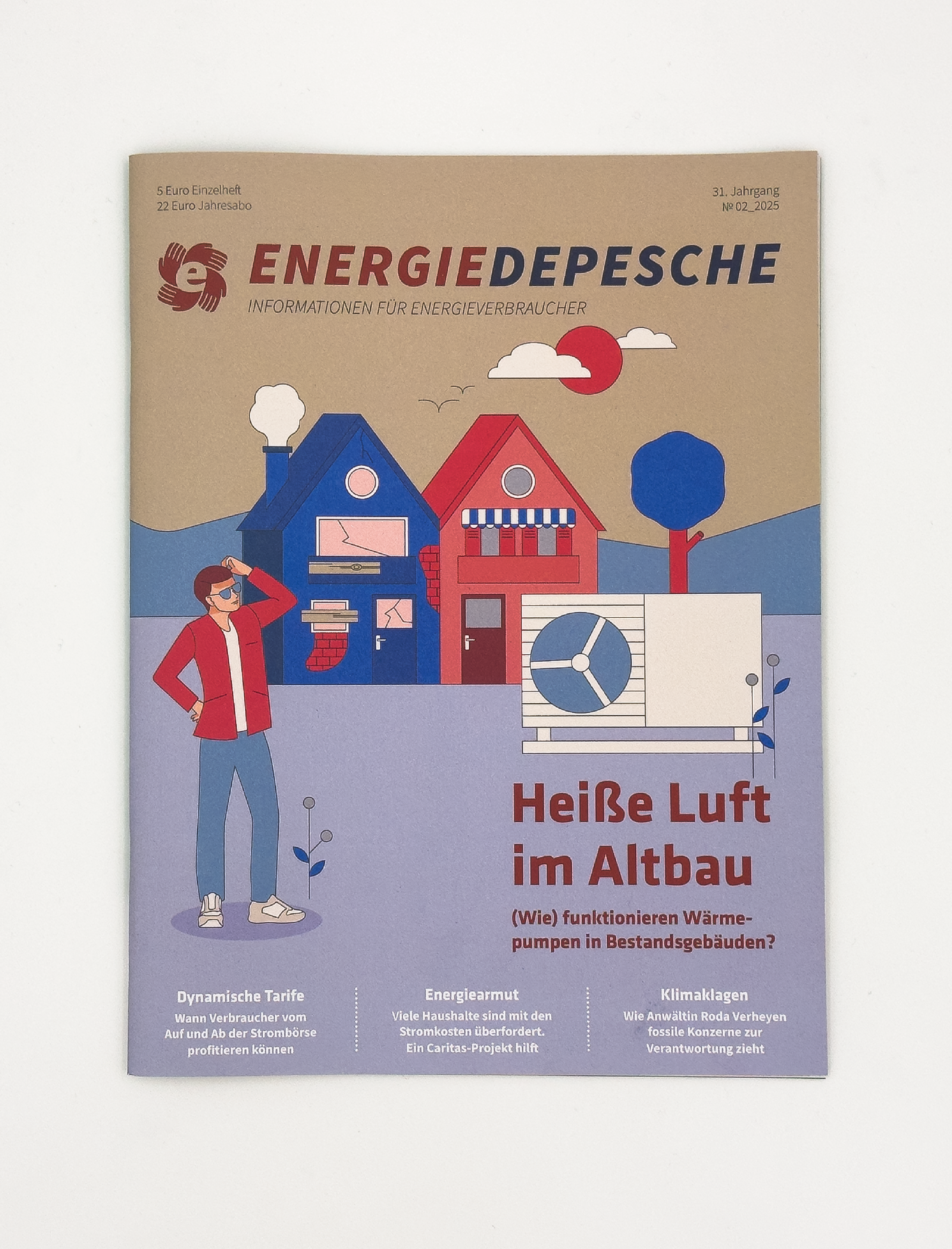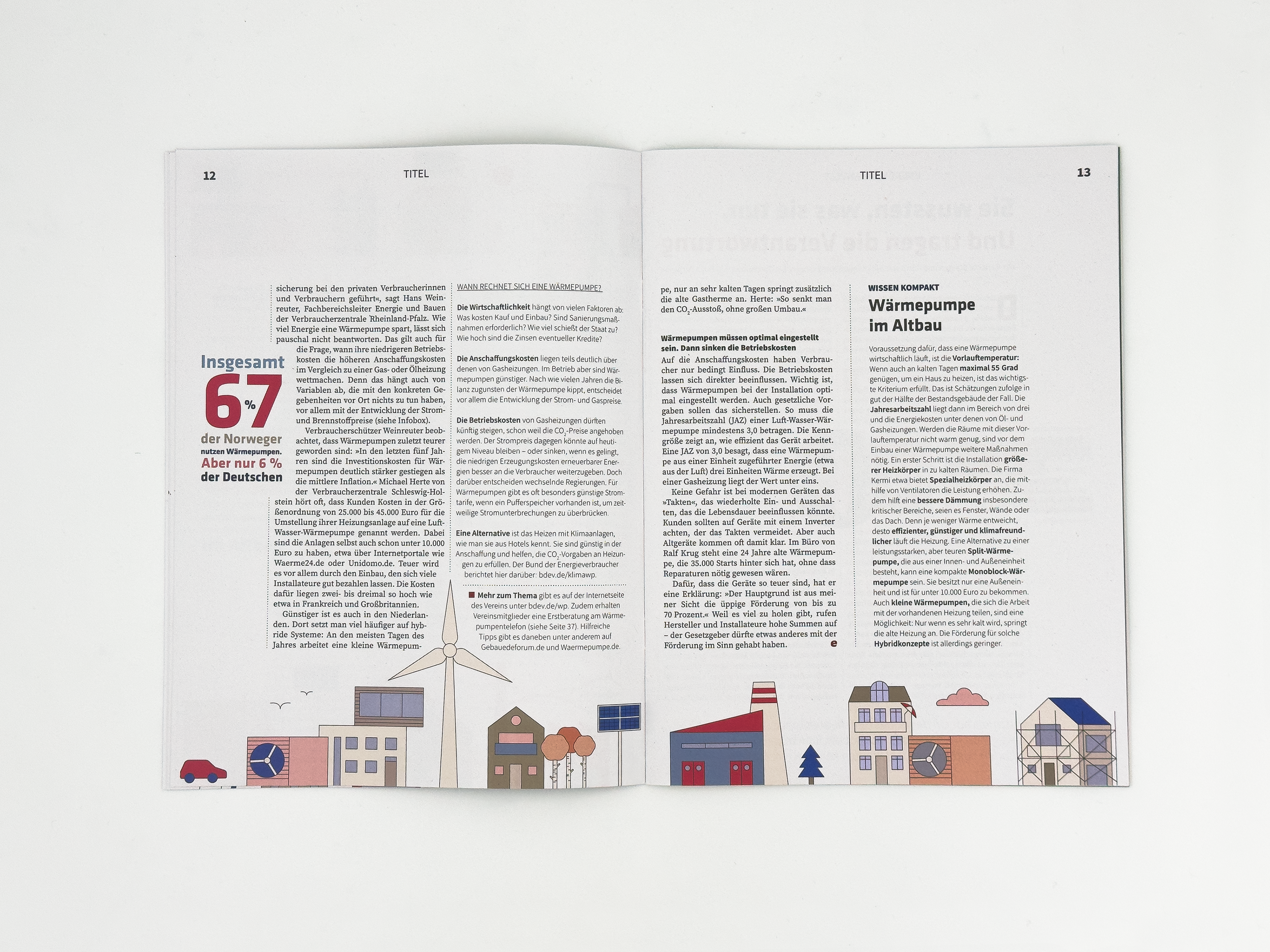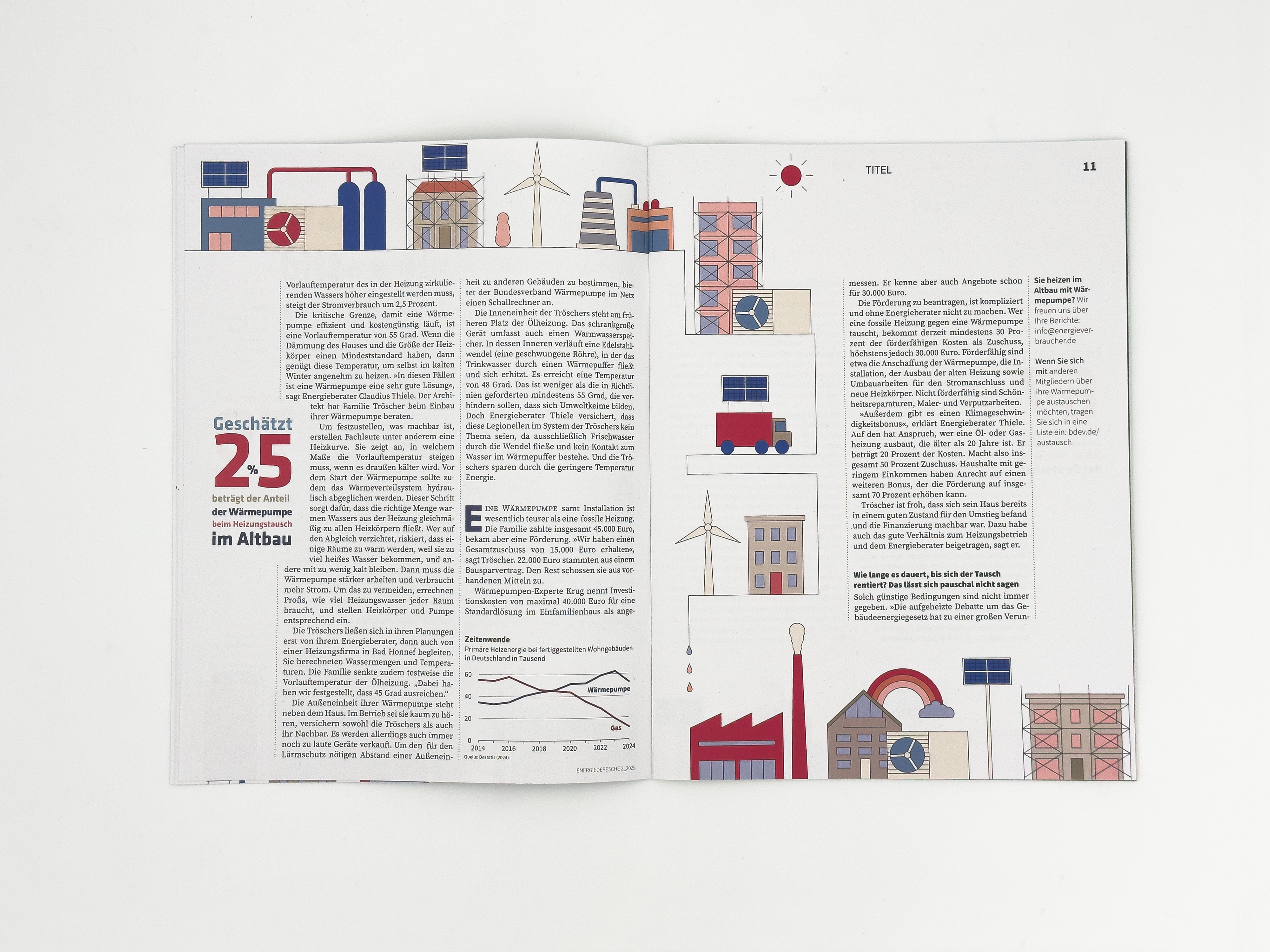 Series of illustrations and cover artwork for the magazine 'Energie Depesche', on the topic of retrofitting heat pumps in existing buildings.