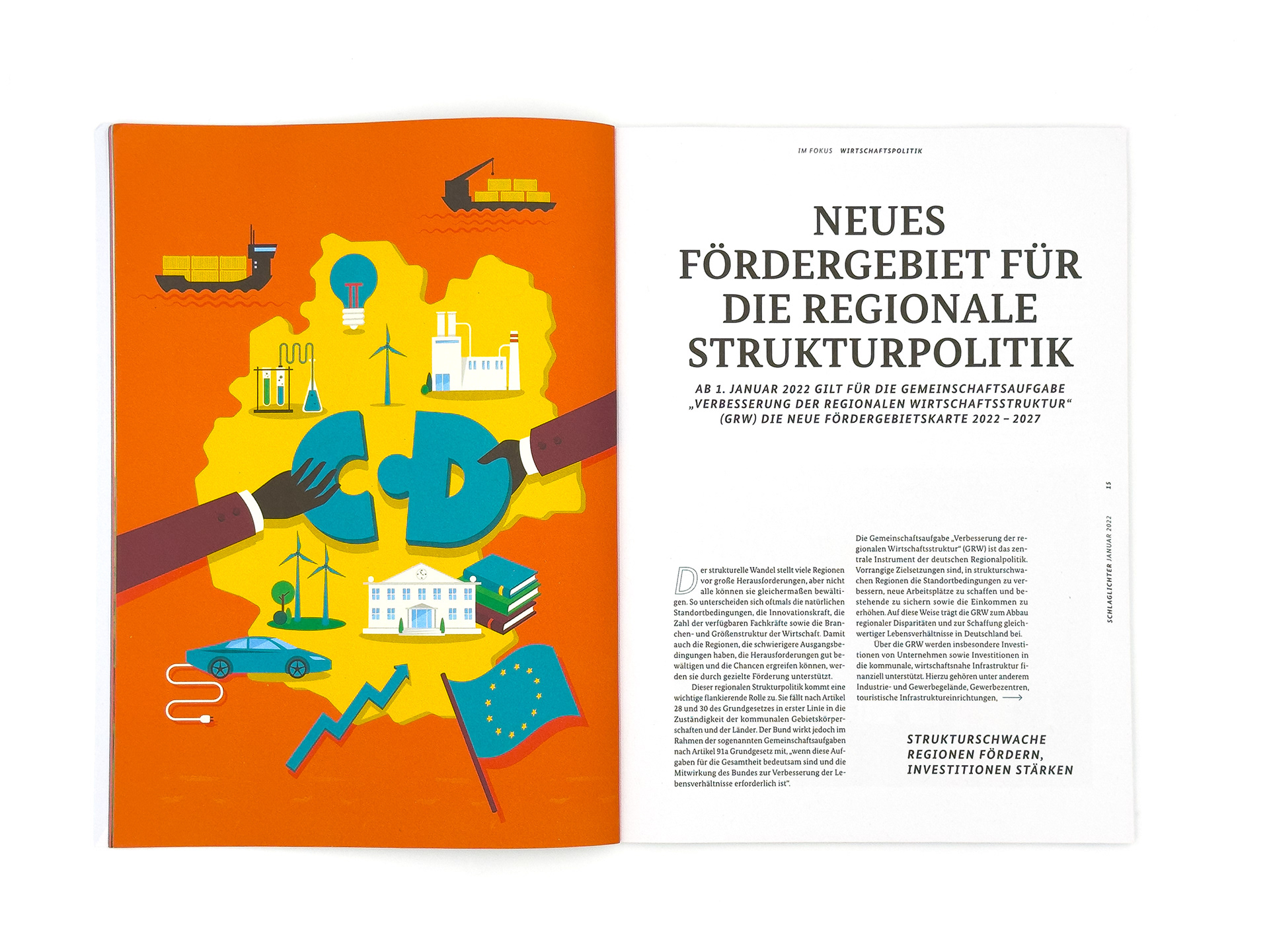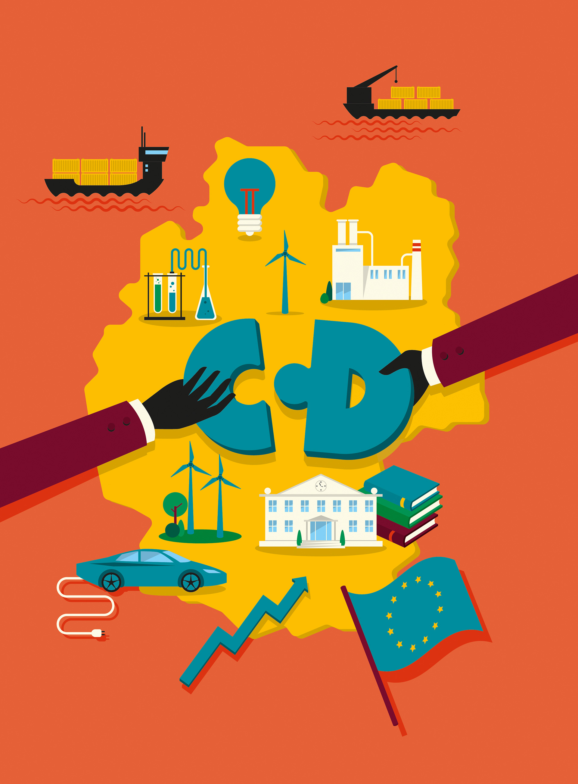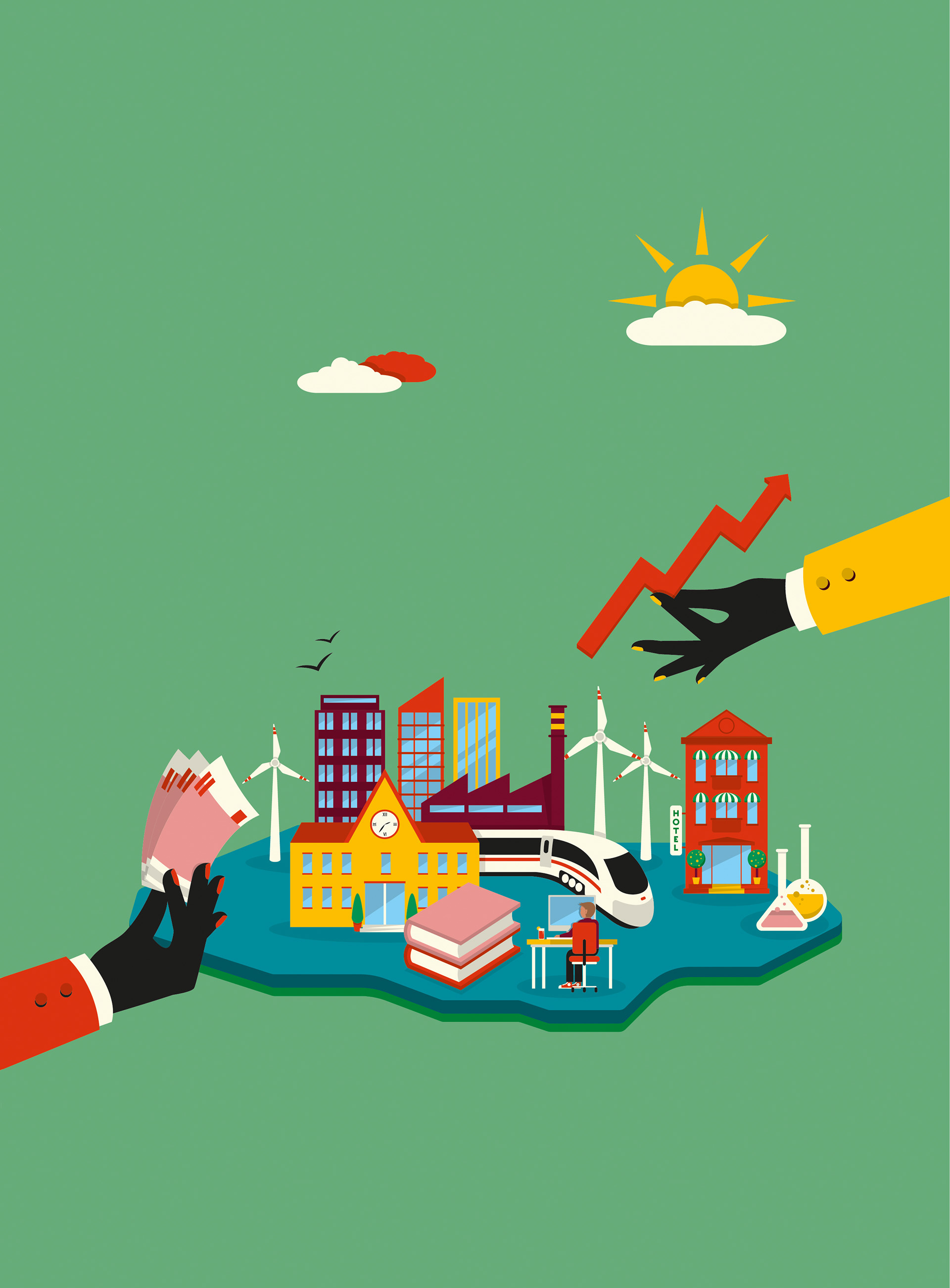 Illustration series for the publication on regional development policy. The full publication is available
