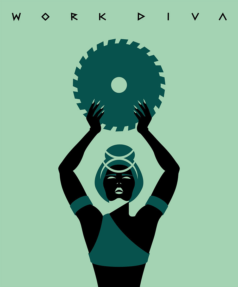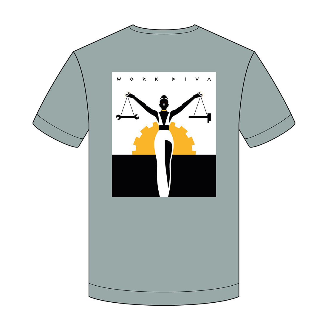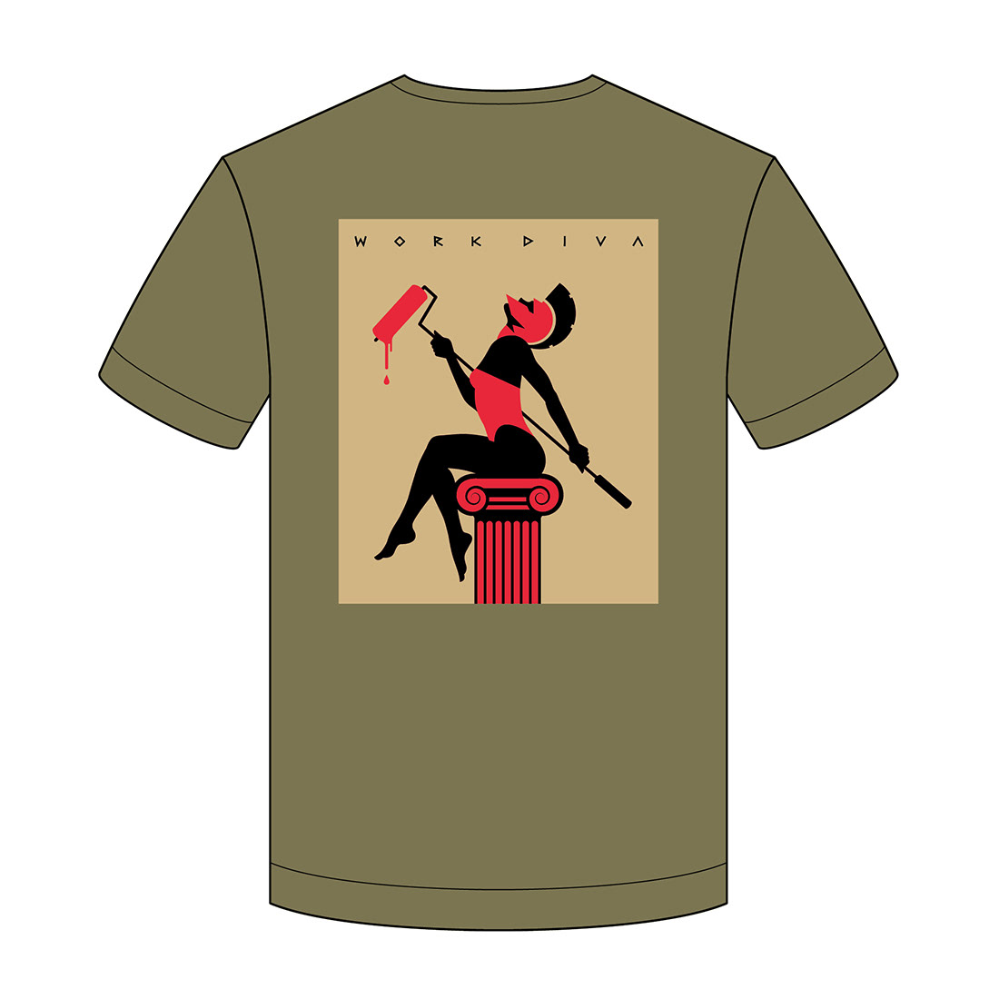 T-shirt series called "Work Diva", inspired by imagery from Ancient Greek mythology.