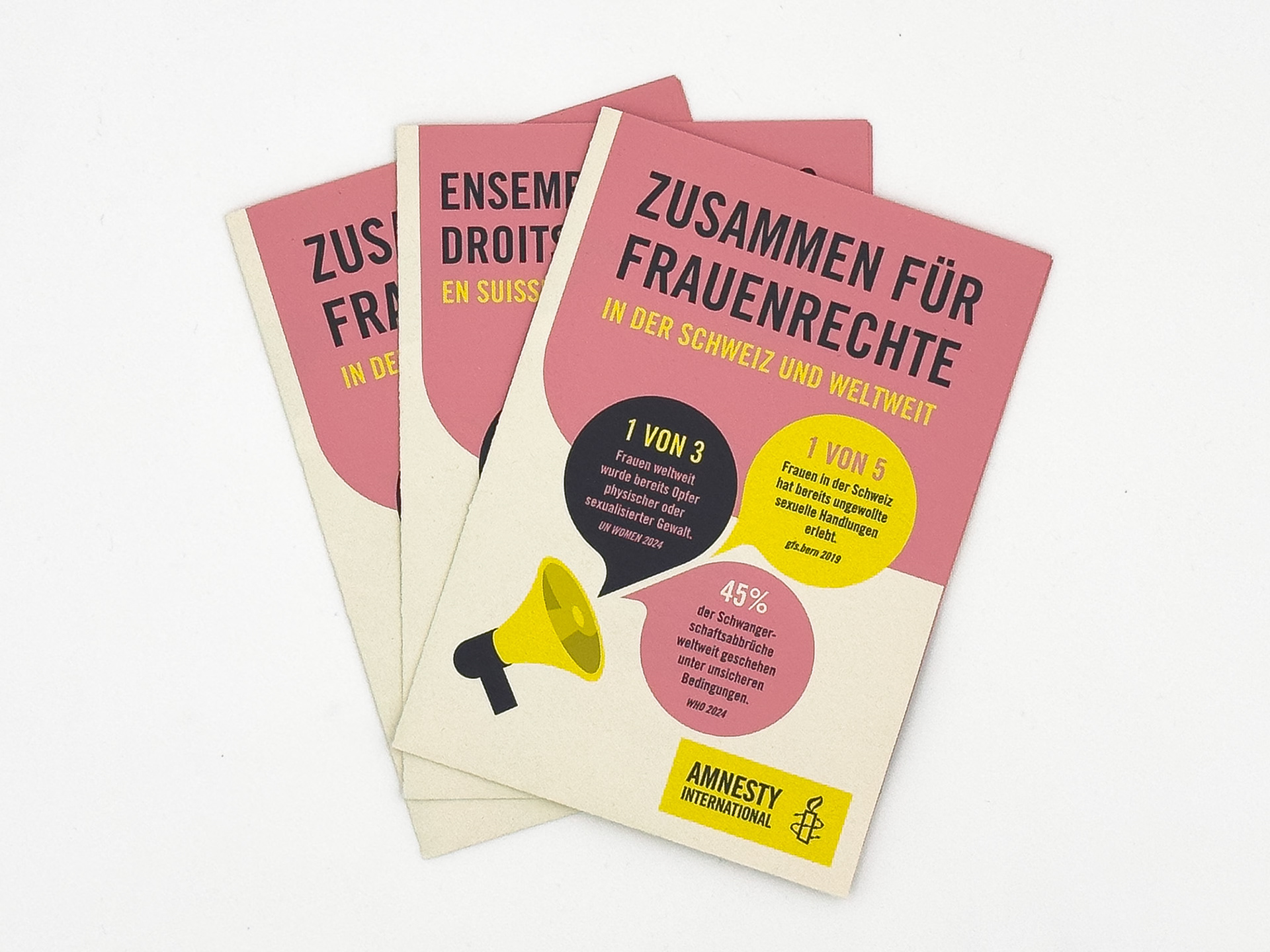 Illustration and graphic design for a flyer commissioned by Amnesty International Switzerland, advocating for the protection of women's rights.