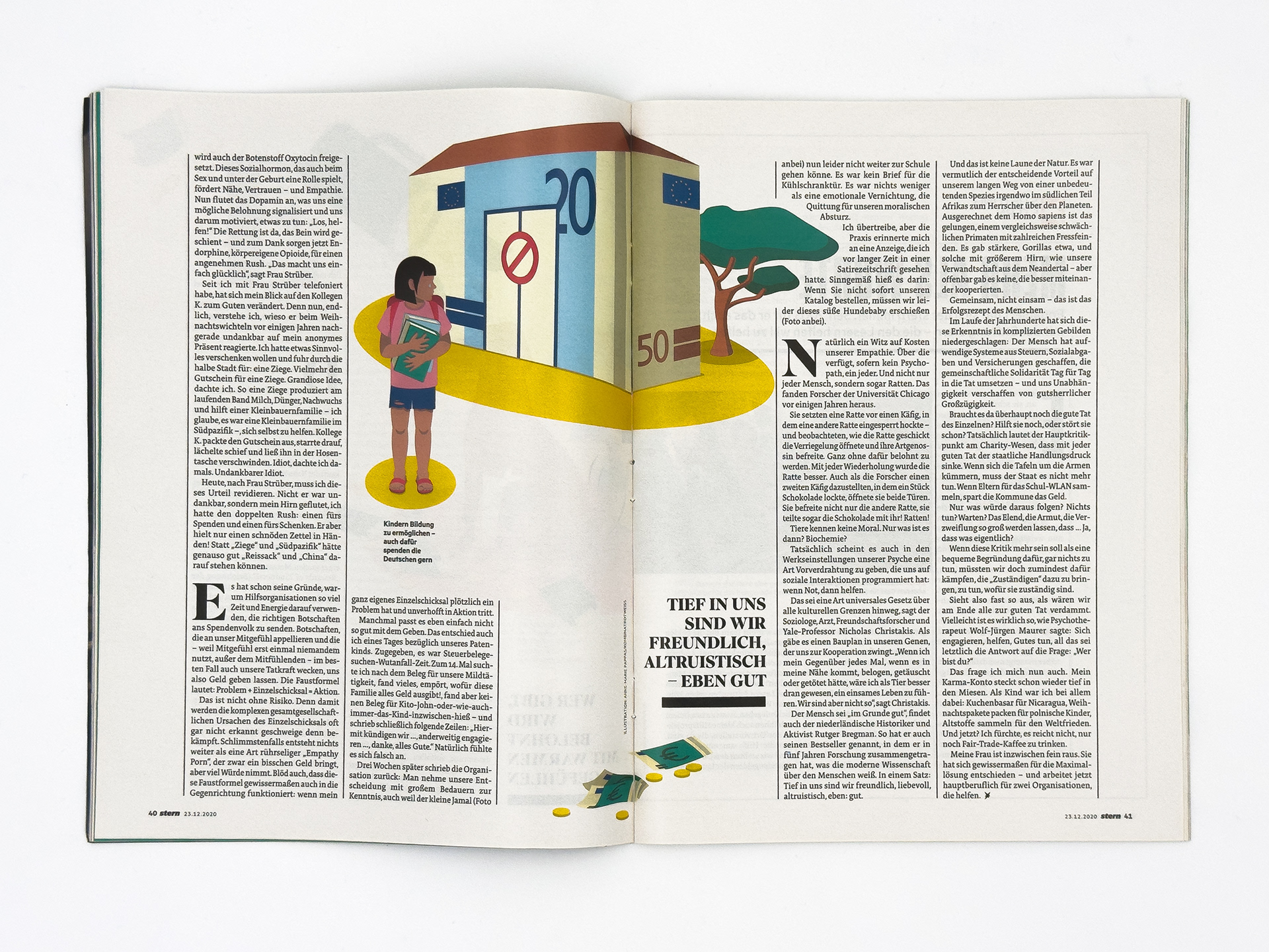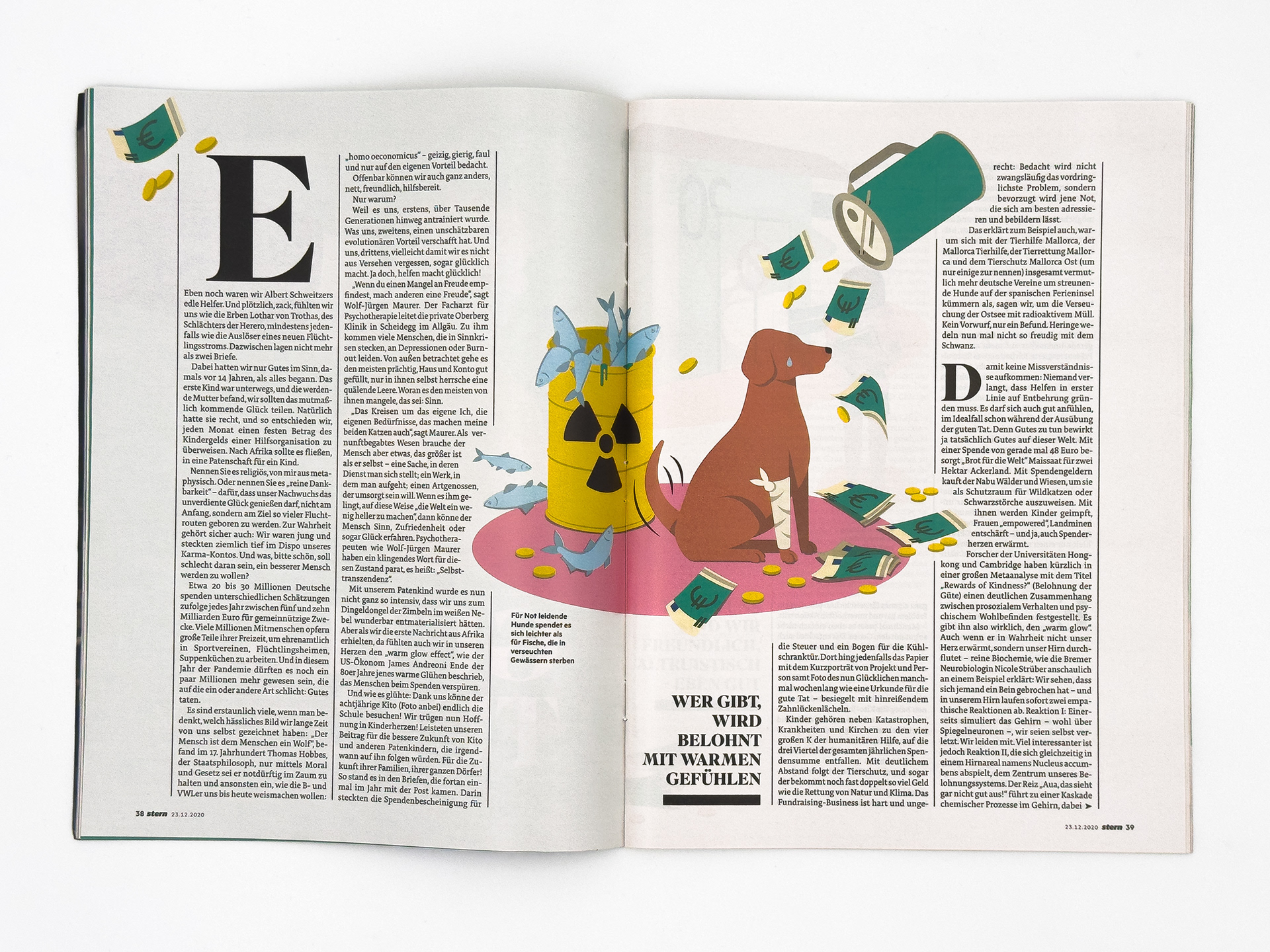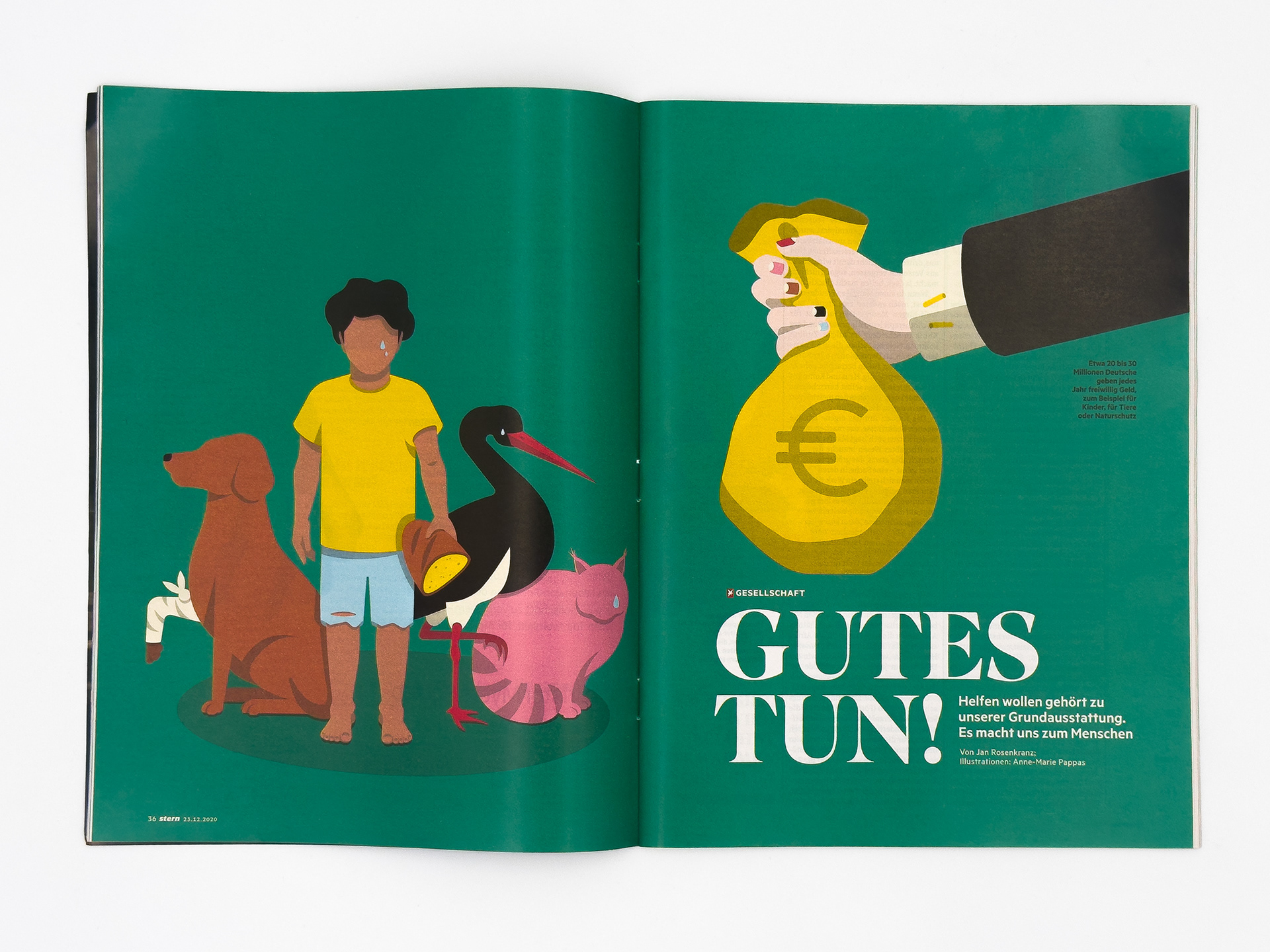 Series of illustrations for issue 53 of Stern magazine on the theme of spending and what influences people to donate.